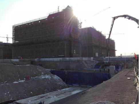 The intersection part was in length of 132m and excavation depth of -14m. It was the most complex part of the integrated pipe gallery project in the work area and terminal area of the Qingdao New Airport. In order to meet the need for gravity-flow of sewage into the gallery, the structure design adopted the method of drop slab. The single cabin of Nansan Road was located above the main cabin of Nanliu Road, the Nansan Road double cabin was located under the main cabin of Nanliu Road, and the main cabin of Nanliu Road was converted from double cabins to three cabins at this part. Meanwhile, the Nanliu Road gas cabin was arranged independently and closely against the main cabin, and alternately up and down with the single cabin and double cabins of Nansan Road.