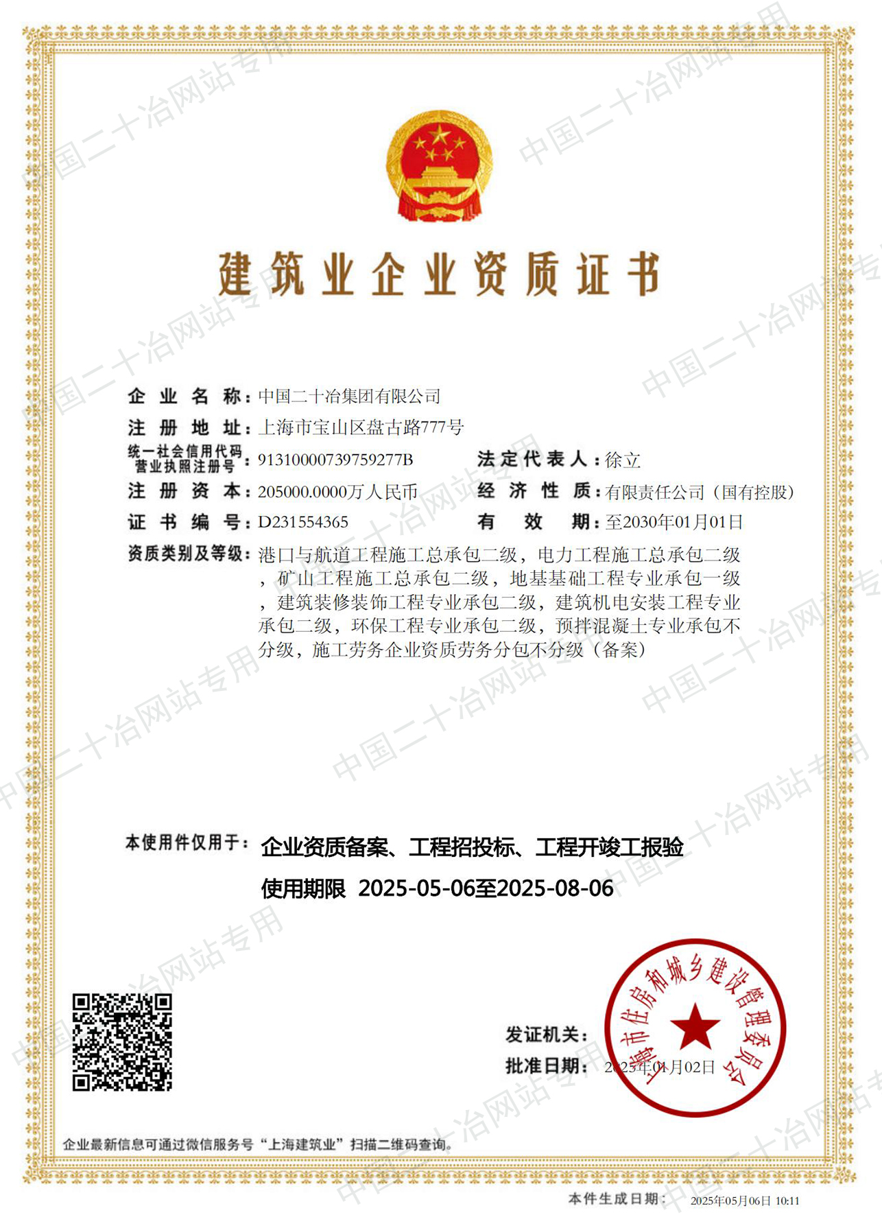 工程施工資質(zhì)(上海市)
