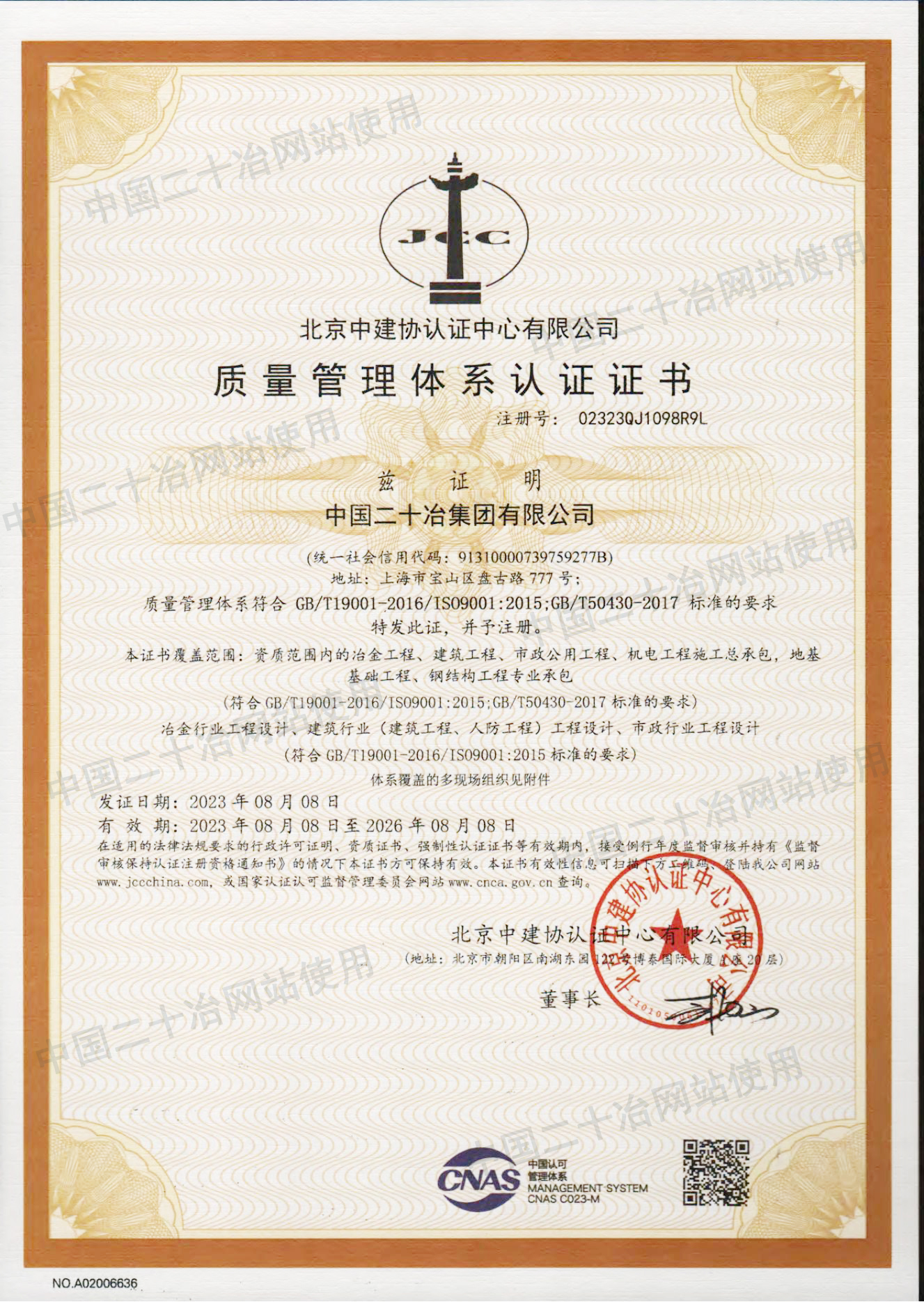 質(zhì)量管理體系認(rèn)證證書