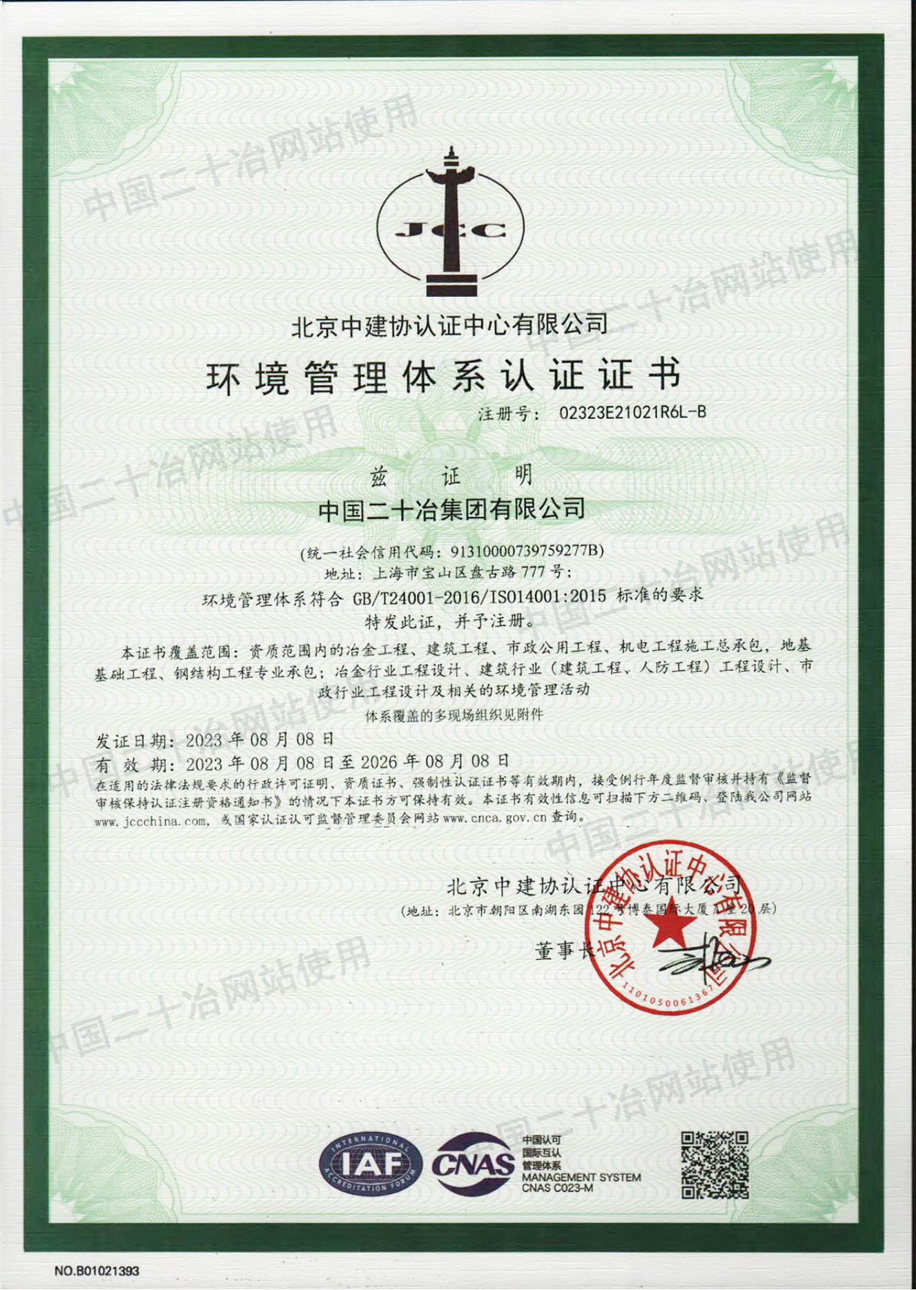 環(huán)境管理體系認(rèn)證證書