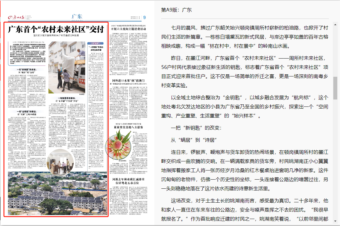 2.南方日?qǐng)?bào):廣東首個(gè)!韶關(guān)始興周所村“未來(lái)社區(qū)”鑰匙交付,56戶村民開啟新生活
