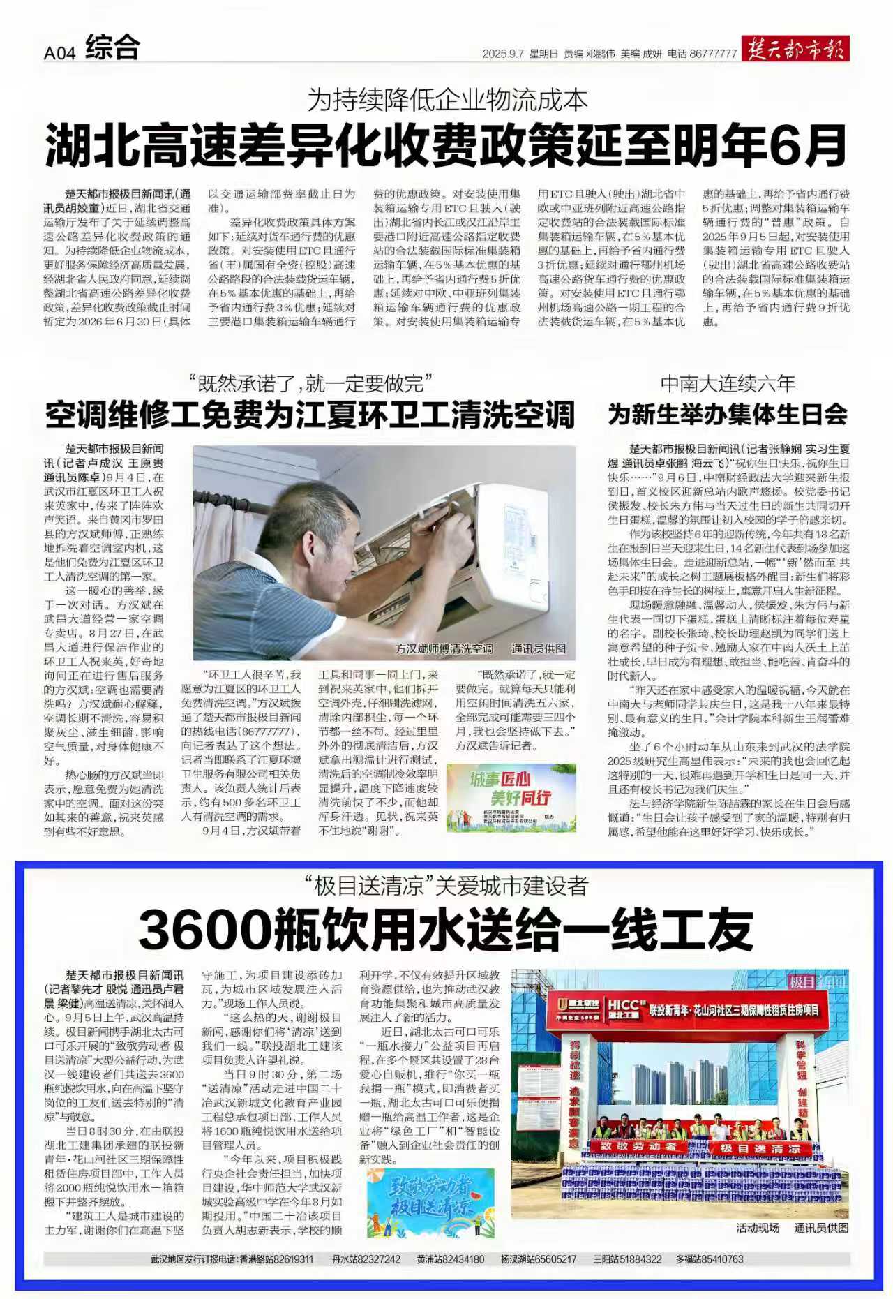 《楚天都市報》:“極目送清涼”關愛城市建設者