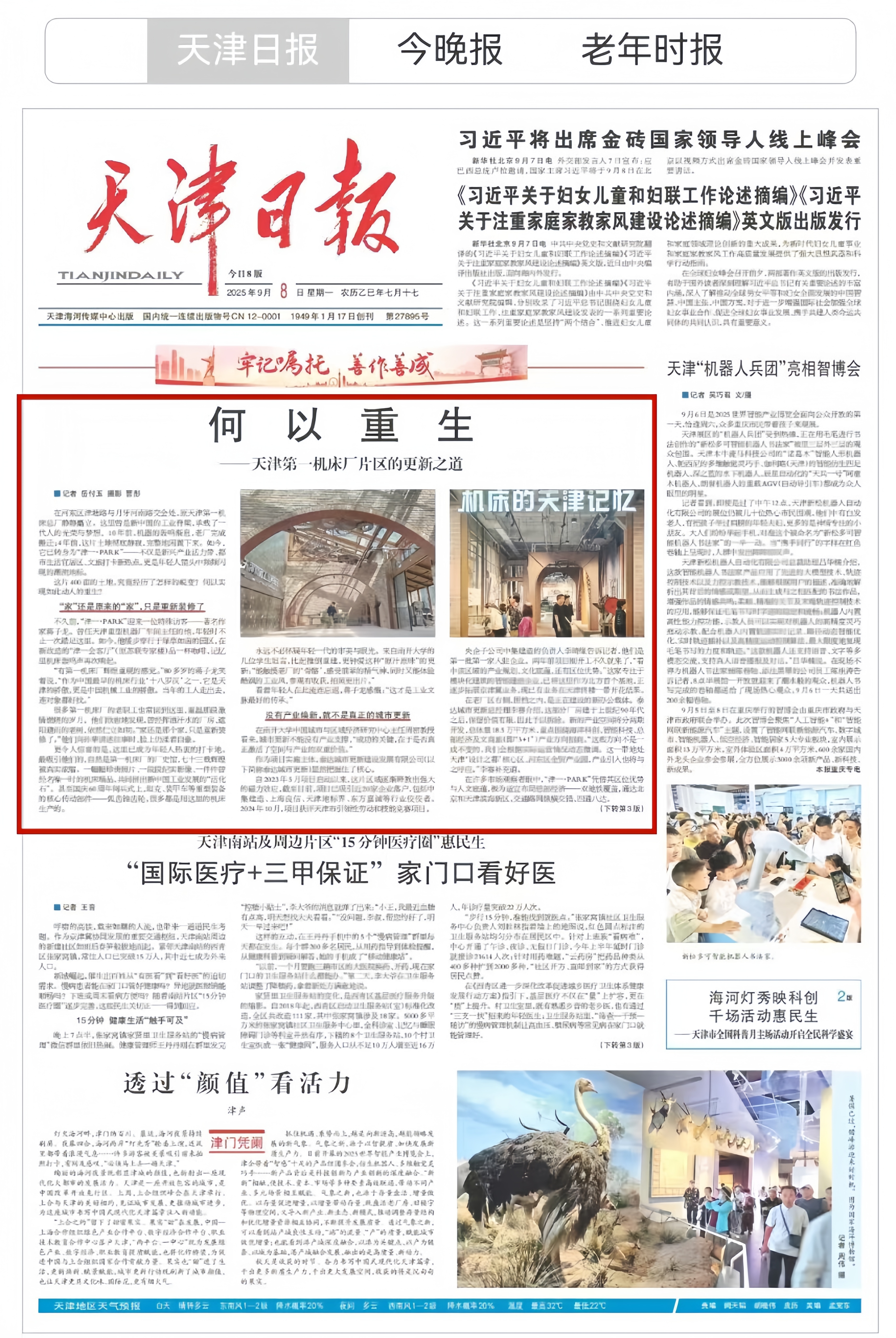 9月8日,《天津日報》以“何以重生——天津第一機床廠片區的更新之道”為題,深度報道了天津二十冶承建的天津第一機床總廠城市更新項目卓越成果。