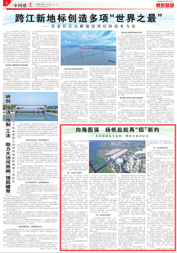 9月18日,《建筑時報》中國建造版面以《向海圖強,揚帆起航再“鋁”新約》為題,報道了上海二十冶承建的北海綠色生態鋁一期項目。