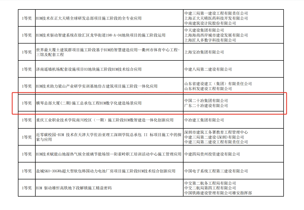 在7月22日揭曉的第十四屆“龍圖杯”全國(guó)BIM(建筑信息模型)大賽中,由中國(guó)二十冶承建的橫琴總部大廈(二期)項(xiàng)目摘得施工組一等獎(jiǎng),這是中國(guó)二十冶在建項(xiàng)目首次斬獲該項(xiàng)全國(guó)BIM頂級(jí)賽事一等獎(jiǎng)榮譽(yù)。