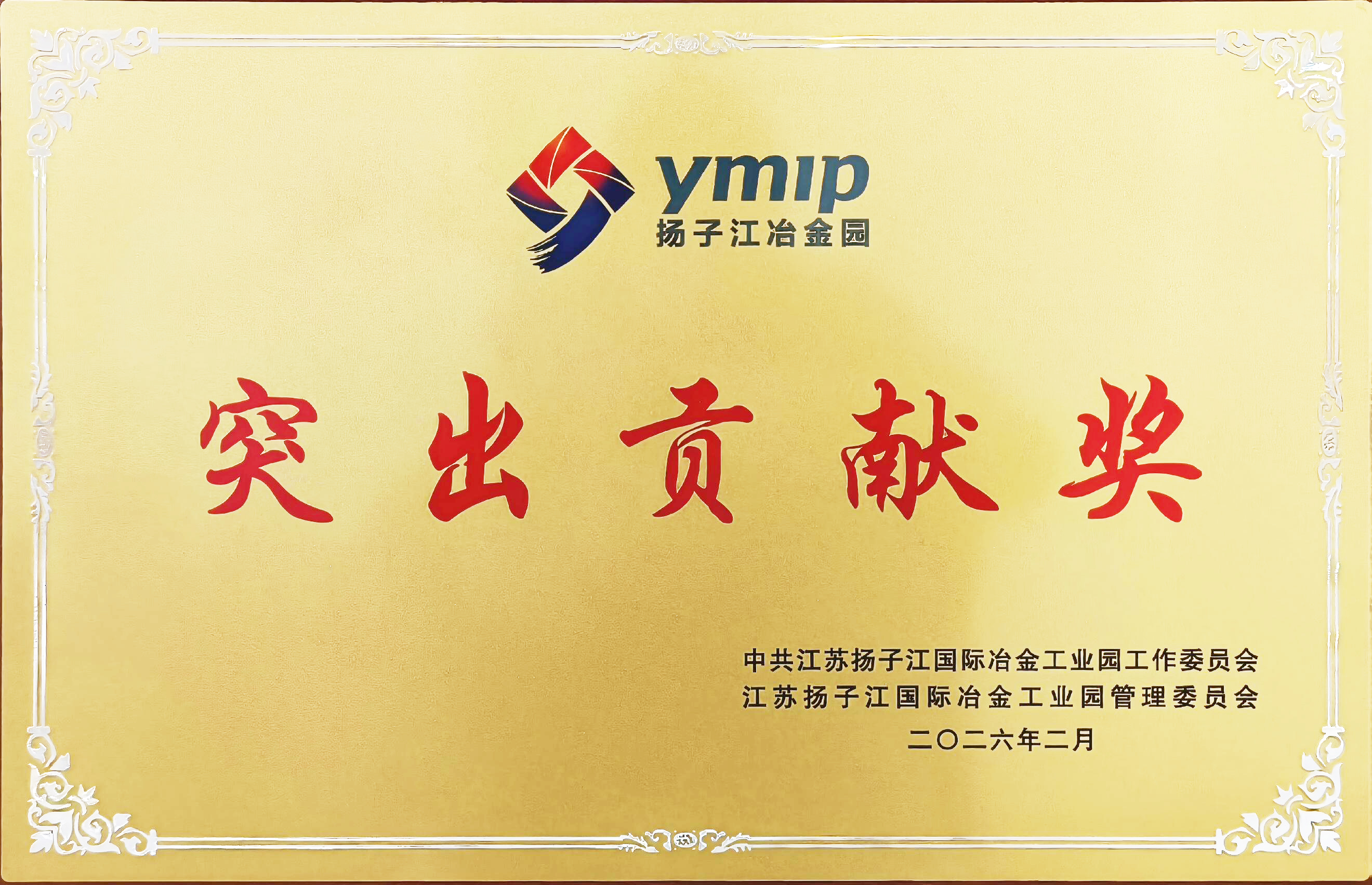 3月2日,上海二十冶榮獲江蘇省揚子江國際冶金工業園 2025 年度突出貢獻獎,作為園鎮重點骨干企業,以實干實績彰顯了在園鎮高質量發展中的重要作用。
